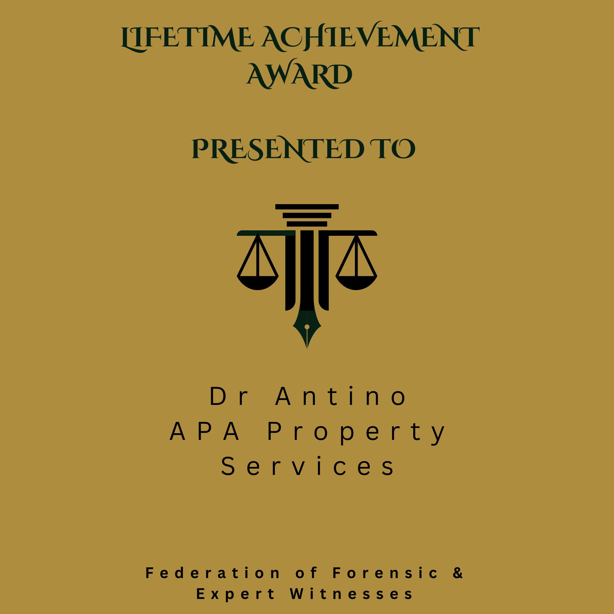 Dr. Philip Antino and APA Property Services are honoured to receive a Lifetime Achievement Award from the Federation of Forensic & Expert Witnesses. This prestigious recognition reflects Dr. Antino’s dedication to excellence in construction, surveying, and engineering consultancy, as well as his influential work in dispute resolution. His commitment to advancing industry practices, particularly in adjudication for landlord and tenant dilapidation disputes, continues to shape the field and uphold the highest professional standards.